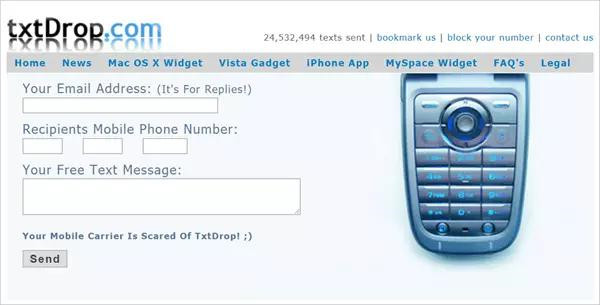 This site begins to run in 2006, it will be your best choice if you would like to send any free anonymous text messages without registering to your friends. You can choose the network carrier you prefer in the US, anonymous text messages can be sent to any mobile phone number without any limit. Additionally, free anonymous text message can be sent along with pictures via this site. That means what you send can be SMS or MMS.