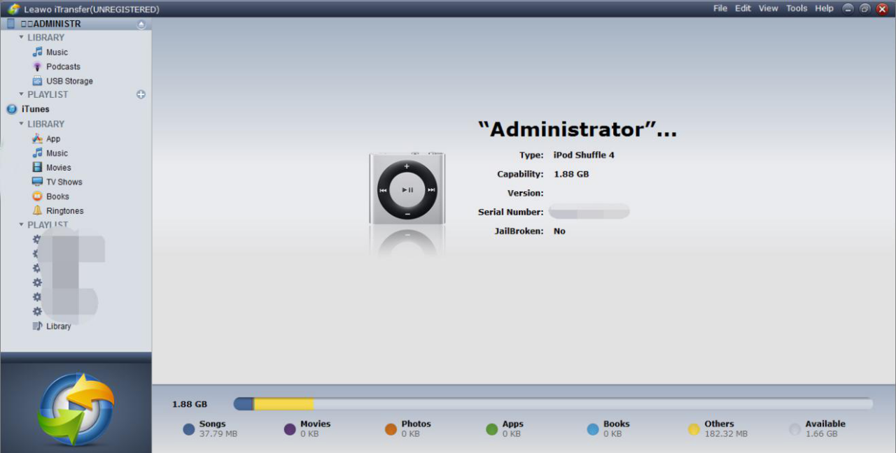 Run Leawo iTransfer on your computer, and then connect iPod to the computer. Wait for seconds, iTransfer will detect iPod automatically.