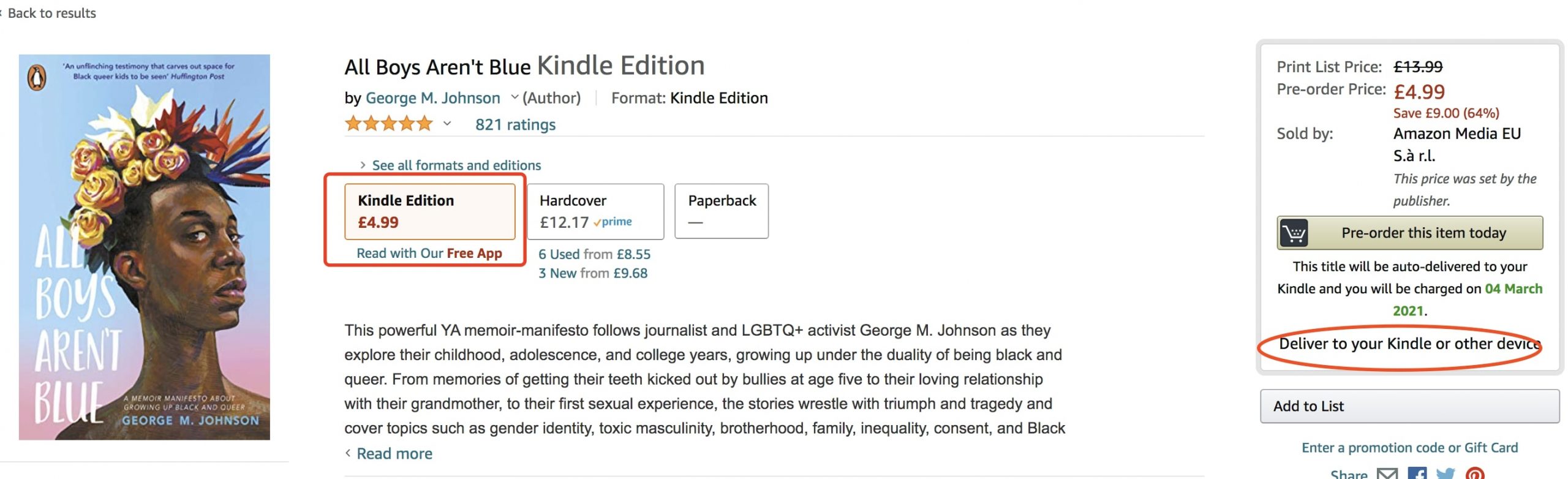 To read LGBT + YA books on Kindle, you will need a kindle App or Kindle eBook, and an amazon account. First off, you have to locate the books on Amazon and purchase them; secondly, to add the purchased books to your Kindle library. Just search the name of books on Amazon. After you placed the order, you’ll get notified that your book is waiting for you in the Kindle library and available to read immediately.