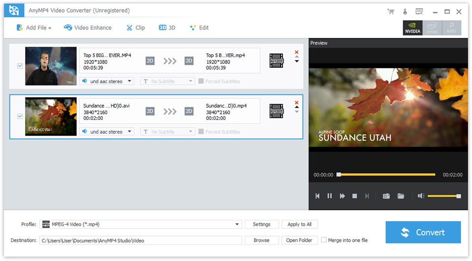The second M3U8 converter is Anymp4 Video Converter, which is able to convert almost all 4K / HD / SD video formats, such as 4K H.265/HEVC Video (*.mp4), 4K H.264/MPEG-4 AVC Video (*.mp4), WebM-VP9 4K WebM Video (*.webm), AVI, FLV, MP4, WMV, MOV, 3GP and so on. Follow the guide below to convert M3U8 with Anymp4 Video Converter.