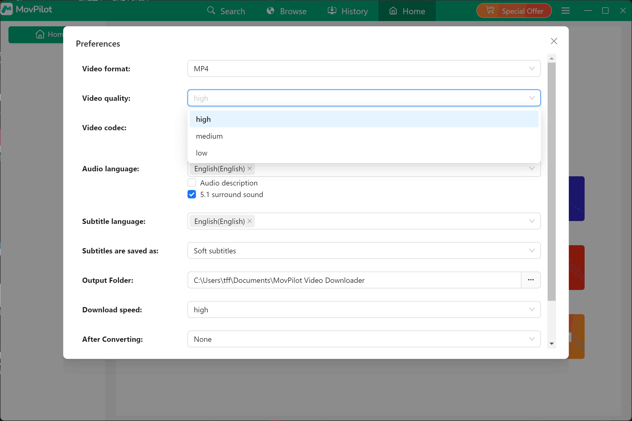 Original Sound and Subtitles: You can choose to save the original soundtrack in multiple languages and also choose to download subtitles embedded into the movie or as a separate file.