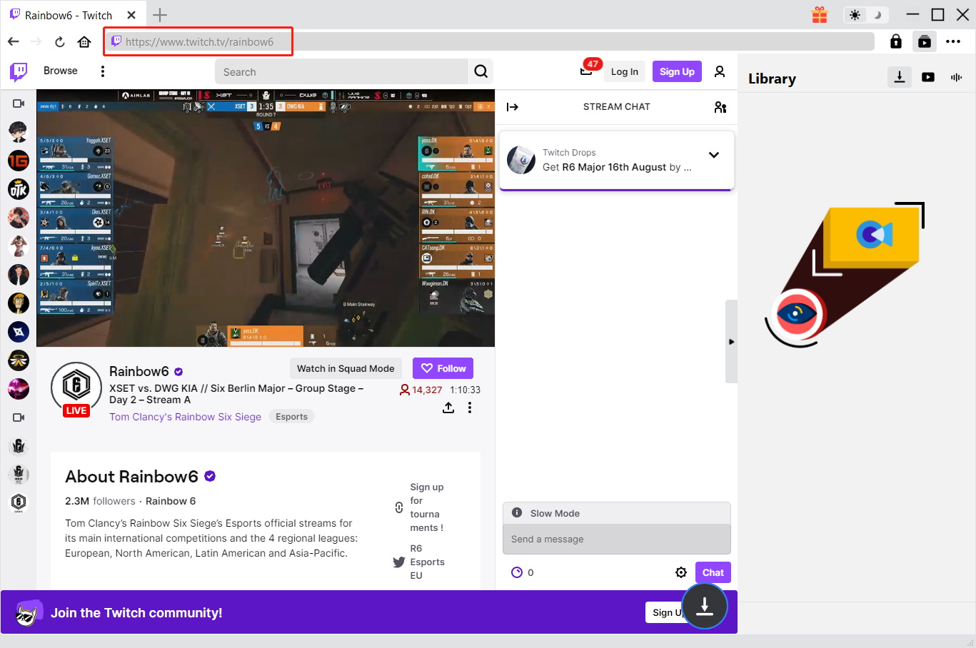 Click on the Twitch icon to enter the Twitch Video Downloader. Paste the link to the address bar and the downloader will detect the video immediately.