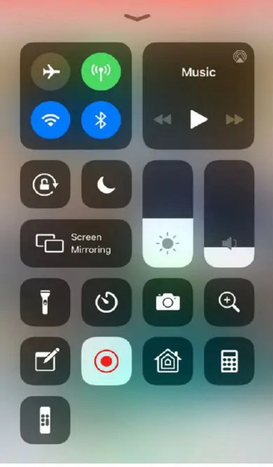 3) Slide down the control center and click the recording button. To stop it, click the button again. The recorded video will be saved in the device’s photo album.