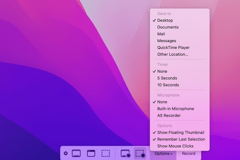 Press the shortcut key Command + Shift + 5 to open the screenshot toolbar. After the recording is done, the file will be saved to the local file.