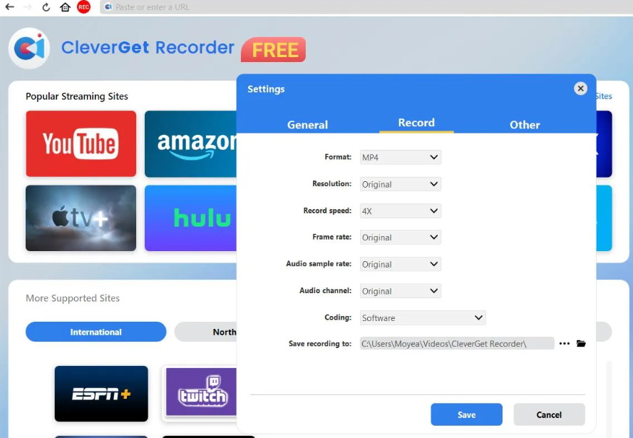 CleverGet Recorder is a free streaming video recorder to record online video for free with up to 4K resolution and 60FPS to MP4/MKV files.