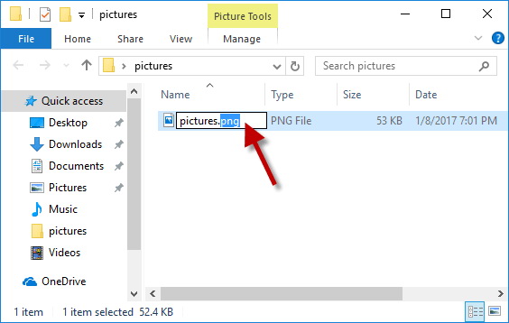 Step 1: Click the file to select it, wait for one second and then click once more. Or you can choose file and press “F2” to change file extension. Windows automatically selects the filename so that anything you type will replace the existing name.
