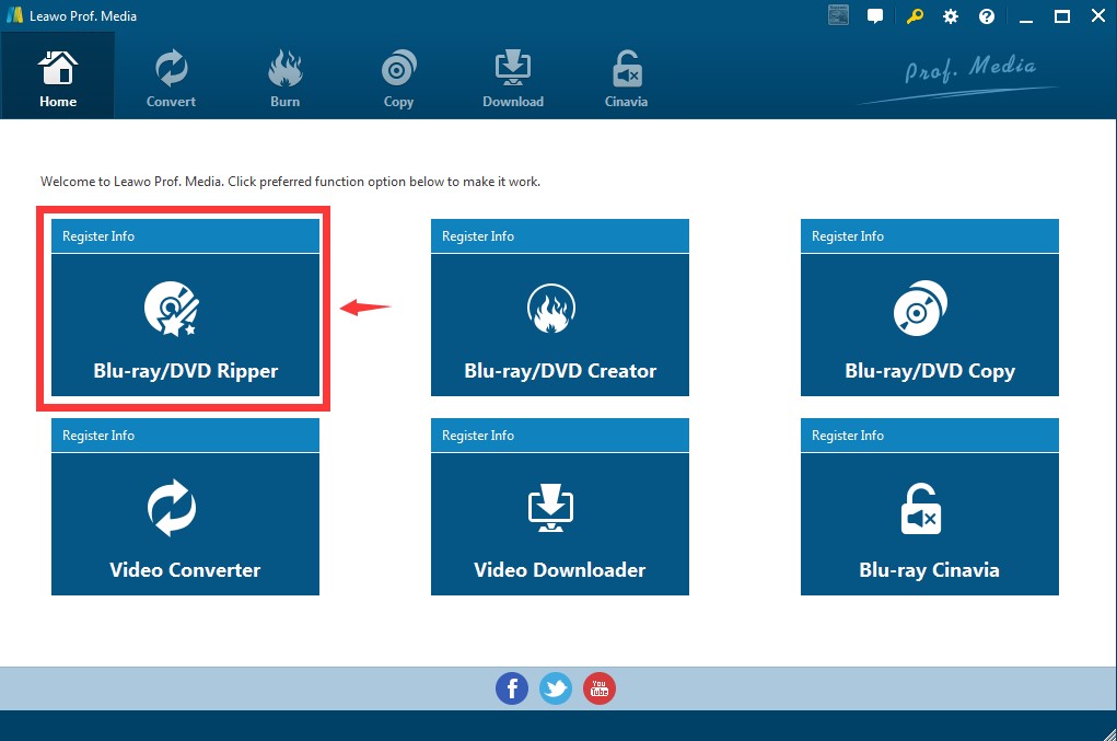 Step 1: After you enter Leawo Prof. Media main interface, click “Blu-ray/DVD Ripper” at the top left area.