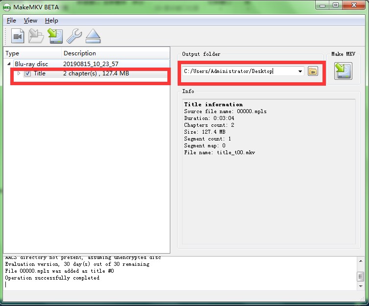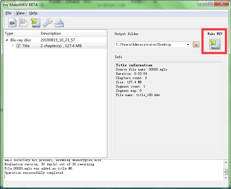 Step 4: After the title and output folder have been set, you can click the “Make MKV” button. By using this software, the DVD file could only be ripped and saved as MKV file format, and there is no other options.
