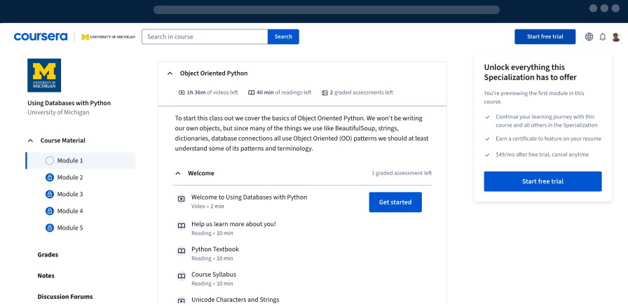 Coursera cooperates with many universities and companies to provide us with separate courses, professional certificates and even complete degree programs. We can watch video lessons at our own pace, complete quizzes and get certificates to help us find jobs.
