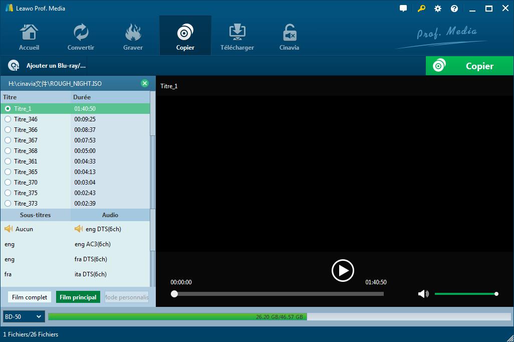 Copieur de Blu-ray de Leawo vous permet de copier Blu-ray/DVD avec des sous-titres et des pistes audio. Vous êtes libre de choisir et de conserver des sous-titres et des pistes audio que vous voulez pour la sauvegarde afin de profiter des films Blu-ray/DVD dans votre langue familière.