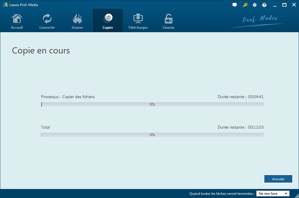 Equipé de la technologie avancée de copie Blu-ray, Copieur de Blu-ray de Leawo vous offre une solution idéale qui vous montrera quel fichier à copier, comment faire des copies et à quelle vitesse vous pouvez copier des films Blu-ray/DVD.
