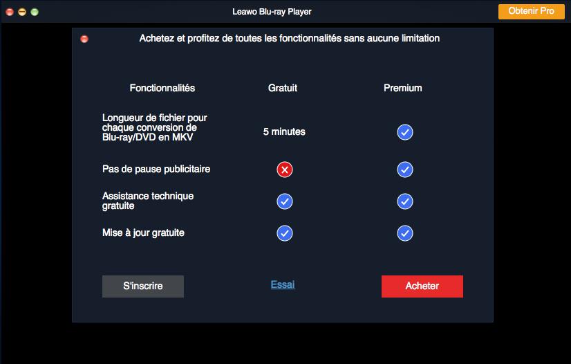 Comme mentionné ci-dessus, le Lecteur de Blu-ray de Leawo est disponible en 2 versions : Gratuite et Premium. La version Premium permet de convertir les Blu-ray/DVD en MKV sans perte de qualité.