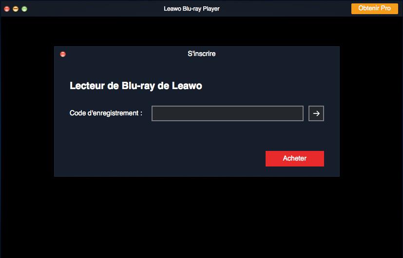 Il existe plusieurs façons d'acheter et de mettre à niveau le Lecteur de Blu-ray Premium de Leawo pour Mac. Vous pouvez directement visiter page d'achat du Lecteur de Blu-ray Premium de Leawo pour Mac, ou cliquer sur le bouton « Obtenir Pro » dans le coin en bas à droite de l'interface du Lecteur de Blu-ray Gratuit de Leawo pour Mac, puis cliquer sur le bouton rouge « Acheter » pour acheter le code de licence du Lecteur de Blu-ray Premium de Leawo pour Mac. Une fois l'achat effectué, le code de licence vous sera envoyé par e-mail.