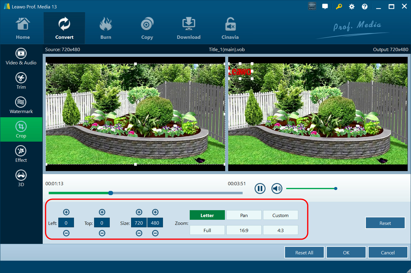 Sous l'onglet « Recadrer », vous pouvez recadrer la vidéo pour supprimer la marge noire. Vous pouvez recadrer la vidéo de plusieurs façons :