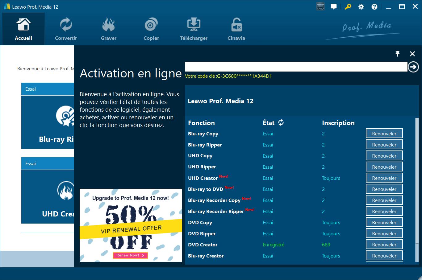 Sur l'interface du programme Prof. Media de Leawo, cliquez sur l'icône « Centre d'Activation »