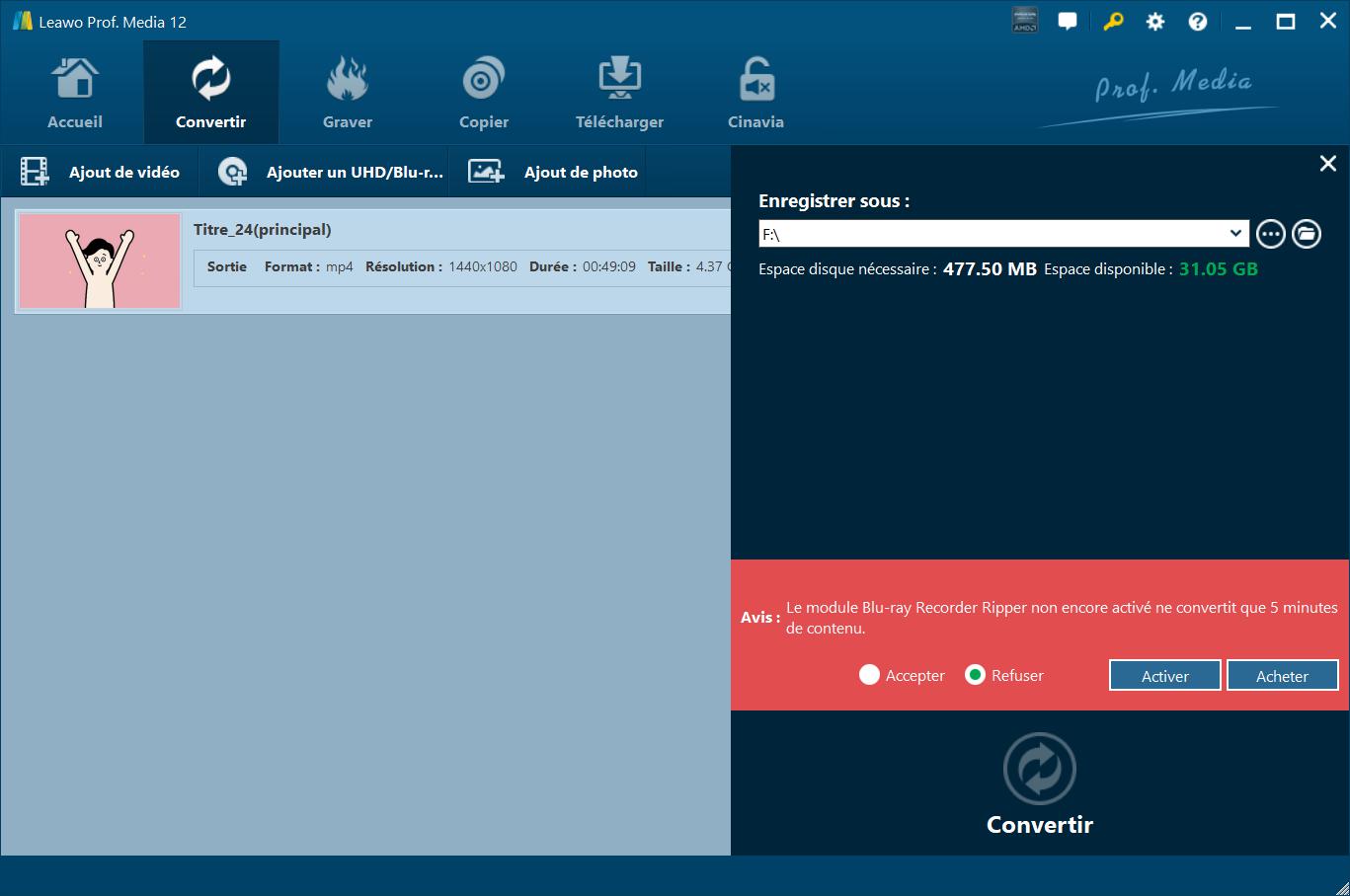 Remarque : Le Recorder Ripper de Blu-ray de Leawo est un module intégré à Prof. Media de Leawo.