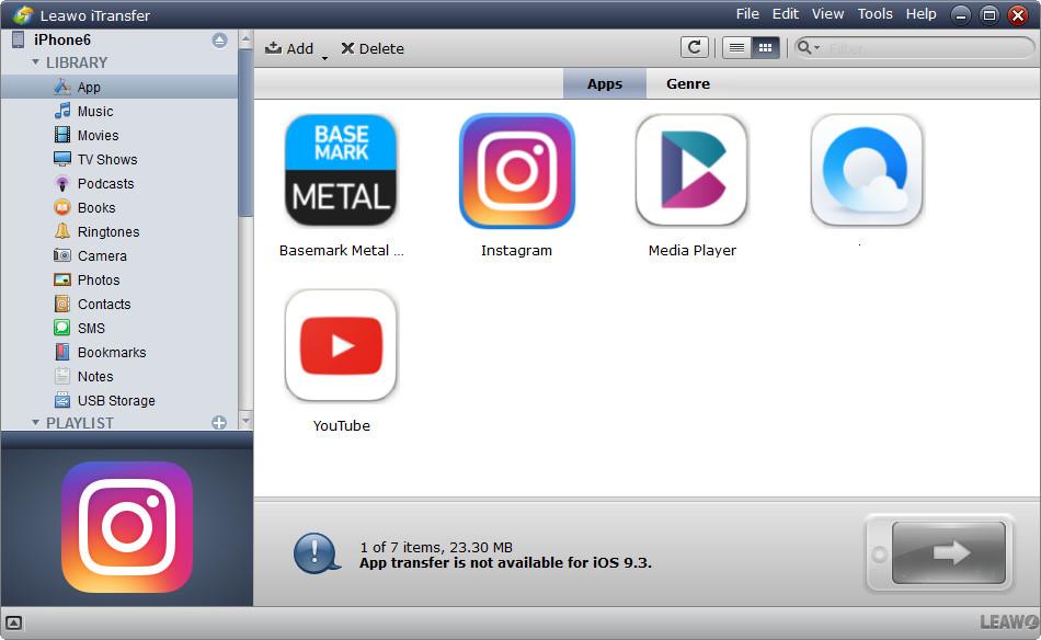 L'iTransfer de Leawo est considéré comme l'un des meilleurs parmi toutes les applications de transfert iPod. Le logiciel permet aux utilisateurs de transférer des fichiers entre des appareils iOS, iTunes et PC, ainsi que de sauvegarder des fichiers iPhone, iPad et iPod sur un ordinateur. L'iTransfer de Leawo permet aux utilisateurs de transférer des applications, de la musique, des films, des émissions de télévision, des sonneries, des livres électroniques, des photos et des pellicules sans synchroniser iTunes, ce qui aide les utilisateurs à transférer des applications de l'ordinateur vers l'iPhone / iPad / iPod touch . Le guide suivant vous montrera comment.