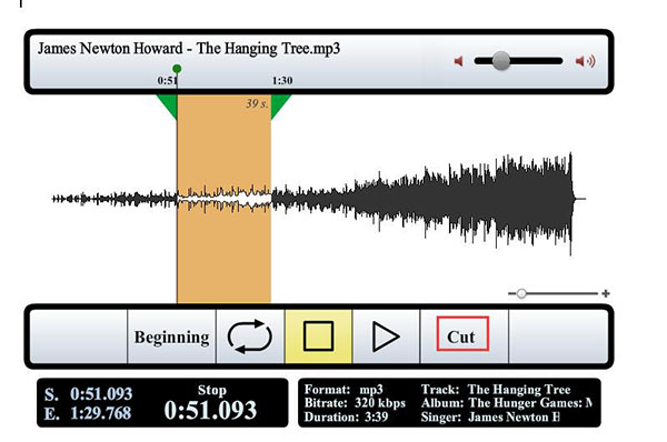 Comme l'un des découpeur de musique en ligne, MP3 Cutter vous permet de découper de la musique au lieu de décoder les fichiers MP3. En outre, vous n'avez pas besoin de vous inquiéter de la perte de qualité sonore. Il vous suffit de trois étapes pour couper une musique, n'est-il pas si facile ? Comme il ne nécessite aucune technique compliquée ou difficile, même un enfant est capable de l'utiliser.