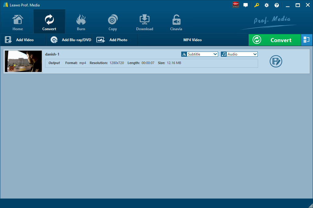 Lancez le Convertisseur de Vidéo de Leawo, allez dans l'onglet « Convertir » et cliquez sur le bouton « Ajouter une vidéo » dans le sous-menu pour charger vos fichiers vidéo WMV sources. Ou vous pouvez également faire glisser et déposer directement les fichiers sources dans l'interface du programme. Une fois les fichiers importés, vous pouvez les lire, sélectionner des sous-titres et des pistes audio à partir des fichiers sources, ajouter des sous-titres externes aux fichiers chargés, modifier les fichiers chargés, etc.