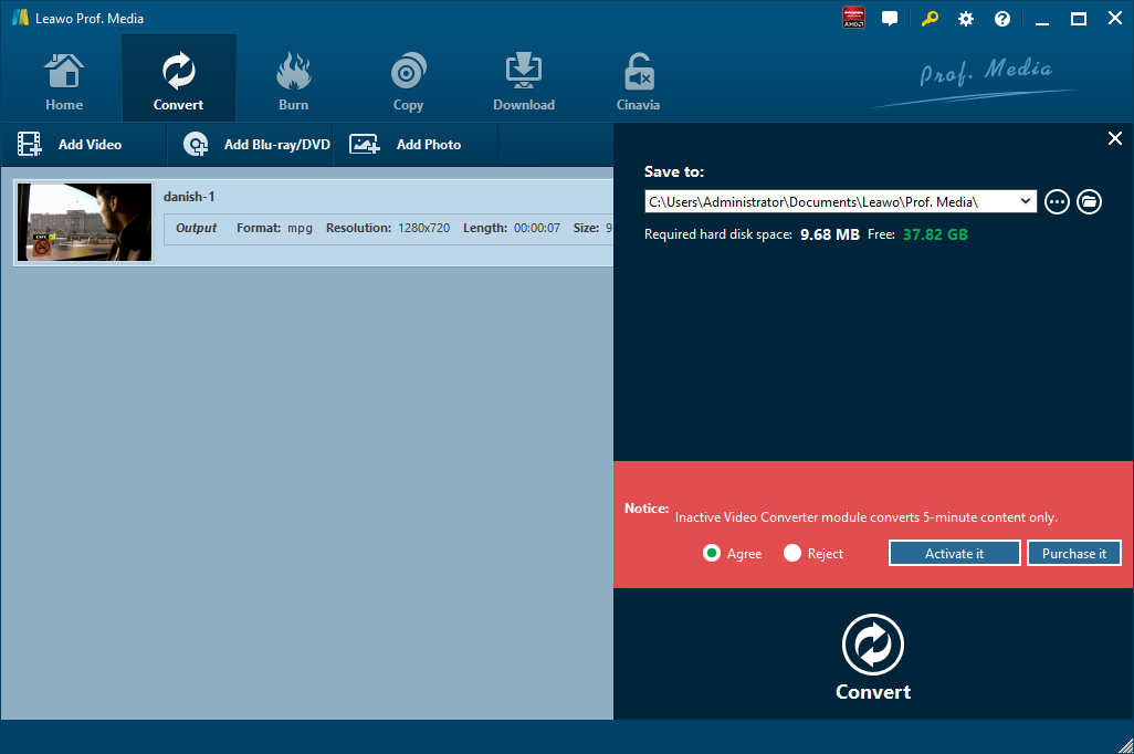 Cliquez sur le lien ci-dessous pour télécharger et installer le Convertisseur de Vidéo de Leawo. Si vous utilisez un Mac, vous pouvez passer à sa version Mac. Maintenant, suivez le guide ci-dessous étape par étape pour convertir une vidéo WMV en MPEG en utilisant le meilleur convertisseur de WMV en MPEG gratuit.