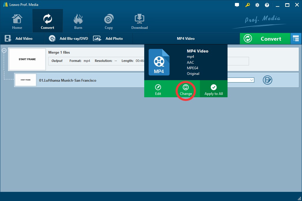 The first way to convert MP4 to MPG is to use is Leawo Video Converter, a professional video to audio converter program. It is one of the most popular video converters in the world, supporting more than 180 different formats including MP4, AVI, FLV, MKV, MP3, MPG etc. What is more, it enables you to convert video to audio without any loss of quality. It is no doubt that it can convert MP4 to MPG as well.