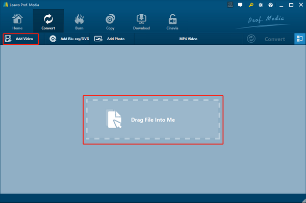 Étape 1 : Téléchargez, installez et lancez le Convertisseur de Vidéo de Leawo. Dans l'interface principale du programme, cliquez sur « Ajouter une vidéo » pour importer votre fichier vidéo MP4 d'origine. Vous pouvez également faire glisser et déposer le fichier sur l'interface pour l'importer.