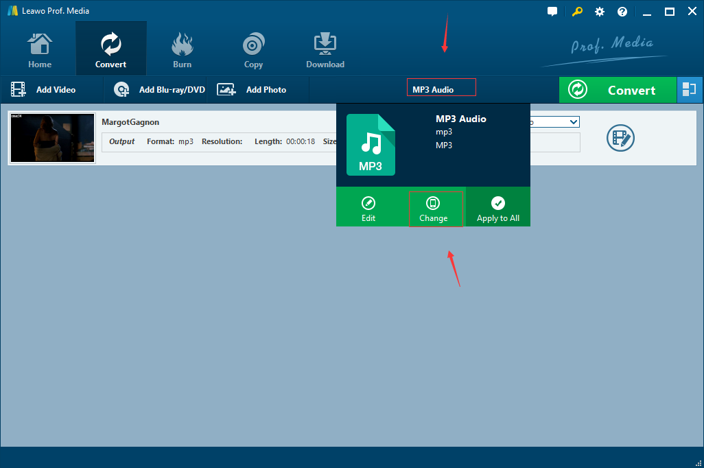 Étape 2. Définir MP3 comme format de sortie