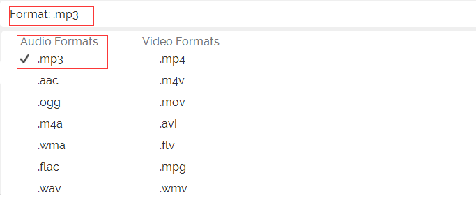 Comme les Ringtones iPhone prennent en charge les fichiers mp3, sélectionnez « .mp3 » dans le champ de format. Le service en ligne fournit les fichiers de sortie sous forme de fichiers mp3 par défaut.