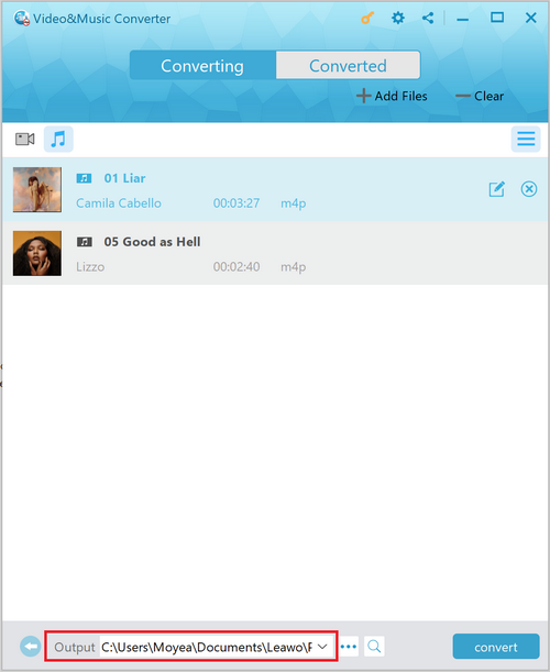 Avant de commencer la conversion, cliquez sur le bouton « … » en bas pour définir un répertoire de sortie pour votre fichier de sortie. Après avoir défini le répertoire de sortie, vous pouvez ensuite cliquer sur le bouton bleu « Convertir » pour démarrer immédiatement la conversion iTunes en MP4.