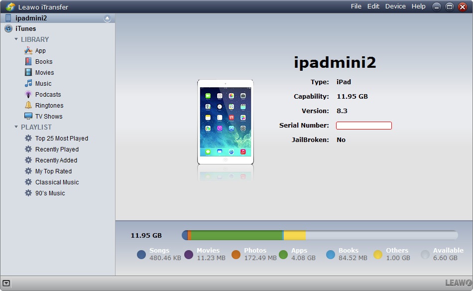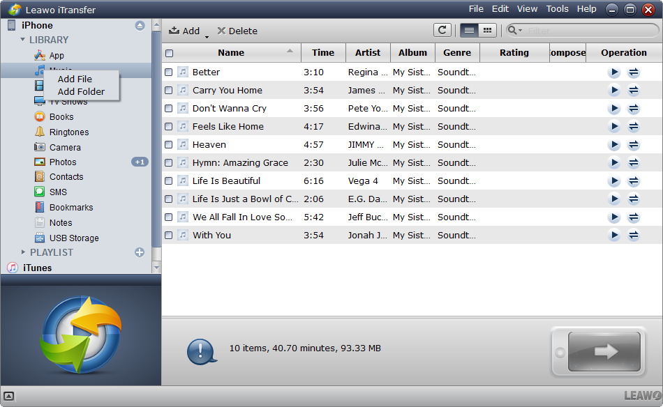 Si vous trouvez que le processus avec iTunes est un peu long et difficile, vous pouvez essayer de synchroniser votre iPad avec un tiers logiciel à haute efficacité afin de transférer FLV vers l'iPad. En ce matière, iTransfer de Leawo serait très utile. C'est un programme très puissant.