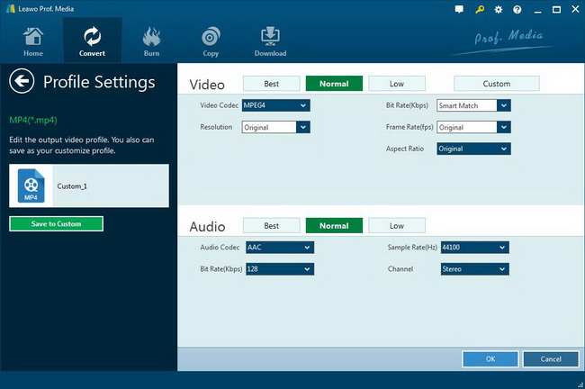 Étape 3 : Vous pouvez également cliquer sur l'option « Vidéo MP4> Modifier » pour accéder au panneau « Paramètres de profil » pour régler les paramètres vidéo et audio du format de sortie, notamment : codec vidéo, qualité, débit binaire, fréquence d'images, largeur Rapport d'aspect, canal, codec audio, résolution, etc.