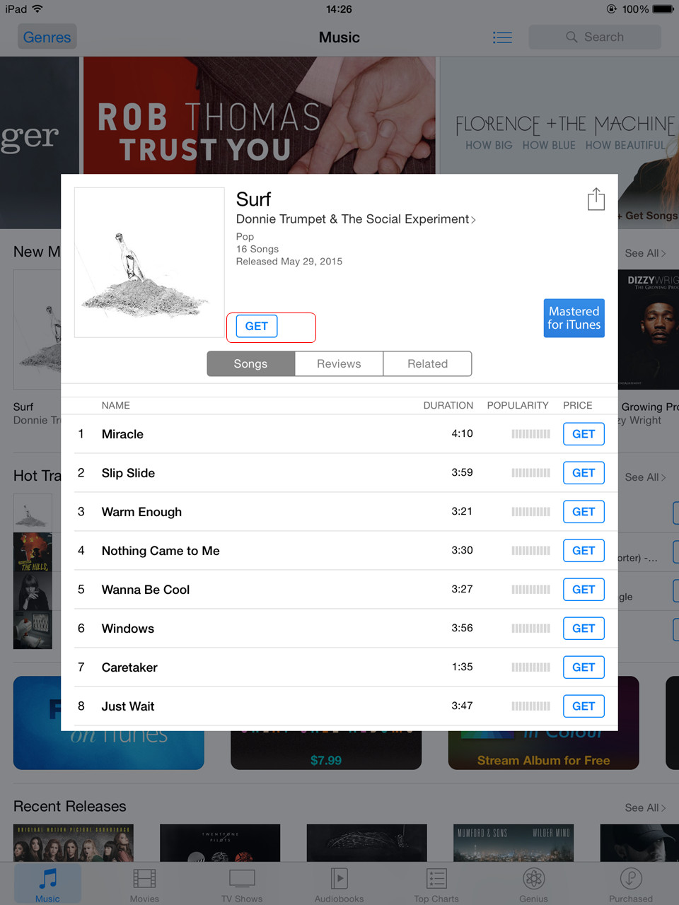 5. Ouvrez l'application Musique sur iPad et profitez des chansons dans iTunes Match.