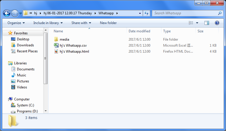 Ouvrez le dossier que vous avez sélectionné pour stocker les messages WhatsApp. Vous devriez y voir les fichiers CSV et HTML. Et le dossier Média contient les fichiers multimédias de vos messages, tels que des vidéos et des photos.