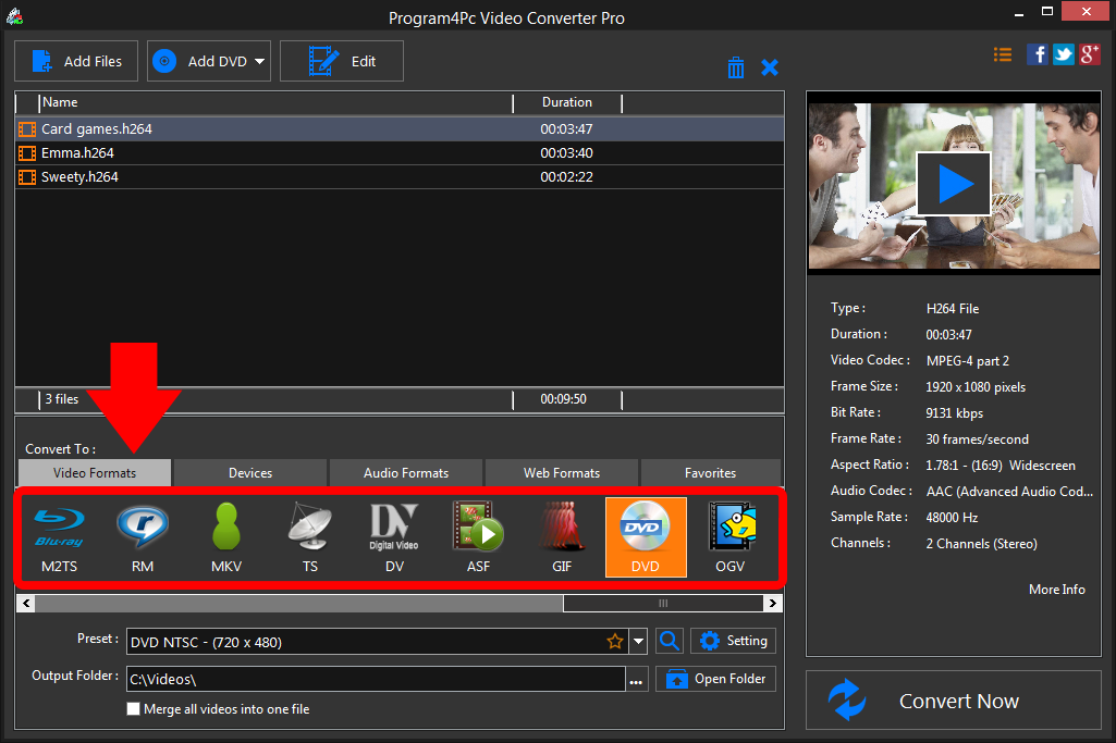 Partie 3 : Comment convertir les fichiers H.264 en DVD avec Program4PC Video Converter Pro