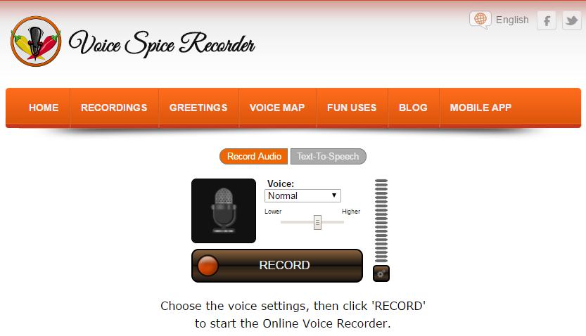 Voice Spice Recorder est une application d'enregistrement vocal en ligne amusante qui peut enregistrer votre voix ou la transformer en audio mignon. Choisissez la voix normale et cliquez sur « ENREGISTRER » pour commencer à enregistrer votre voix. Il créera un lien URL afin de vous permettre de la lire en ligne ou la partager avec les autres. Vous pouvez changer votre voix en robot ou en écureuil, ou créer une carte électronique avec vos salutations vocales.