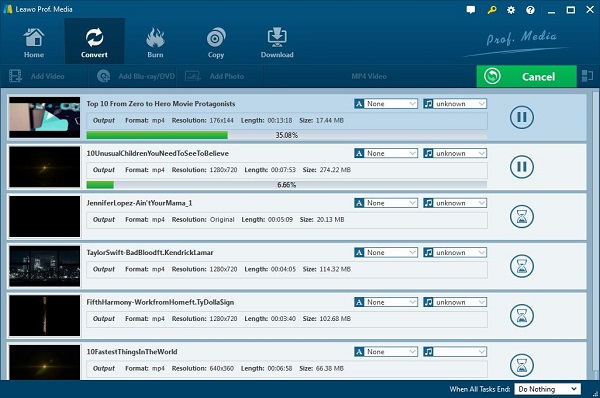Le Convertisseur de vidéo de Leawo est considéré comme le meilleur logiciel de conversion pour la vidéo et l'audio. Plus de 180 formats peuvent être convertis via ce logiciel. Le fichier d'entrée de la vidéo peut être MKV, MP4, MOV et plus. Ce logiciel permet également de convertir les fichiers audio, tels que AAC, AC3, MP3, etc. Les formats de sortie des vidéos courantes incluent MP4, H.265 PMP4 et MKV, etc. Et les fichiers de sortie audio communs incluent AAC, AC3 et WAV et plus. Les vidéos HD telles que MP4 HD, AVI HD, HD VOB, etc. sont les formats de fichiers de sortie avec le Convertisseur de vidéo de Leawo.