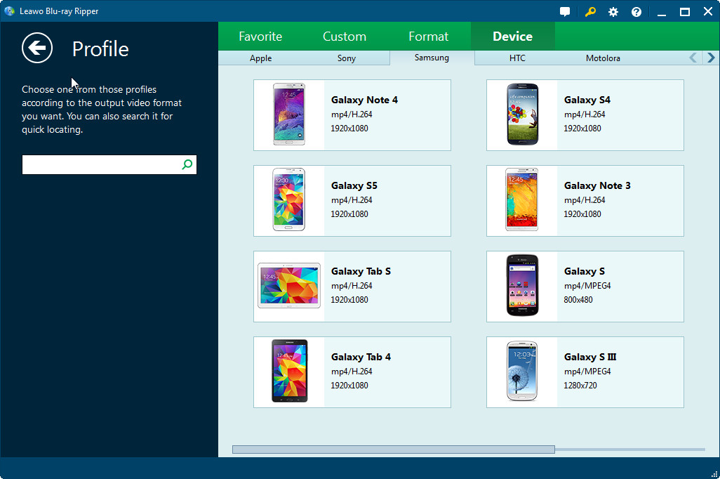 L'Extracteur de DVD de Leawo peut extraire des DVD vers aux formats de sortie pris en charge par tous les appareils Android tels que Samsung Galaxy S4, Galaxy Note 8, HTC One X, Kindle Fire HD, Google Nexus 7, etc., à votre disposition.