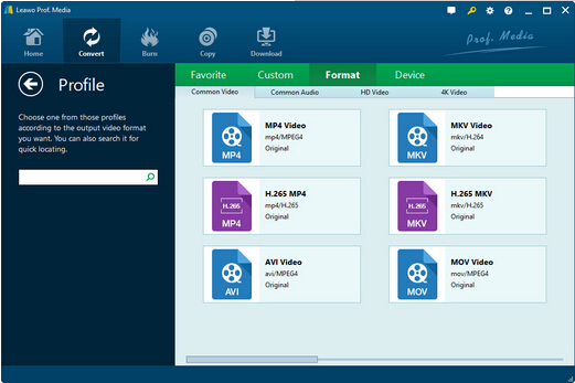 Une autre solution vise à convertir MOV en MP4 ou d'autres formats avec le Convertisseur de Vidéo de Leawo pour le lire dans QuickTime. Le Convertisseur de Vidéo de Leawo est un programme de conversion de vidéo HD polyvalent destiné à aider les utilisateurs à convertir les vidéos et audios entre tous les formats. Avec ce convertisseur puissant, vous pouvez convertir toute vidéo en MP4.