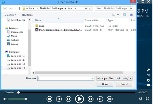 Vous avez besoin de charger les fichiers multimédias sources pour la lecture, qui pourraient être des vidéo ou des disques Blu-ray / DVD. Cliquez sur la boîte Ouvrir un fichier à gauche de l'interface principale du programme, puis le programme vous guidera à choisir les vidéos sources.