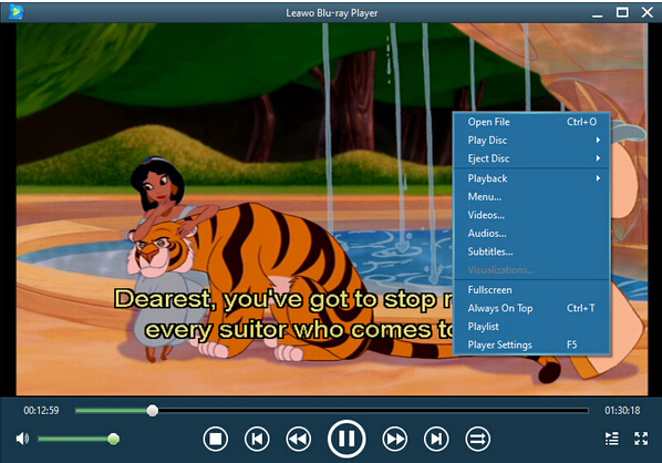 La troisième solution est de faire appel à l'alternative à QuickTime Player – Lecteur de Blu-ray de Leawo, pour lire les fichiers MOV sur Windows / Mac. Le Lecteur de Blu-ray de Leawo est un lecteur multimédia polyvalent pour lire les disques Blu-ray / DVD, les vidéos courantes et les vidéos HD jusqu'à 1080P sous Windows 8. Comme le meilleur combo de logiciel de lecteur multimédia, il est doté de diverses technologies de décodage d'audio avancés, comme Dolby, DTS, AAC, DTS-HD, etc. Et il permet aux utilisateurs d'ajuster les pistes d'audio et de vidéos ainsi que les sous-titres au cours de la lecture, de personnaliser l'image de fond et de changer les apparences de programme. Les utilisateurs pourraient même ajouter des vidéos à la liste de lecture interne pour profiter des films en continu.