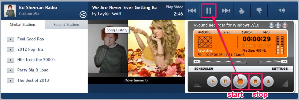 Ouvrez la page de musique en streaming et préparez-vous pour l'enregistrement. Cliquez sur le bouton d'enregistrement ou appuyez sur le raccourci clavier que vous avez défini avant de commencer l'enregistrement, puis jouez votre chanson en ligne. Vous pouvez cliquer sur le bouton d'enregistrement pour mettre en pause ou continuer. Une fois terminé, cliquez sur le bouton d'arrêt. La chanson sera enregistrée dans le dossier de téléchargement.