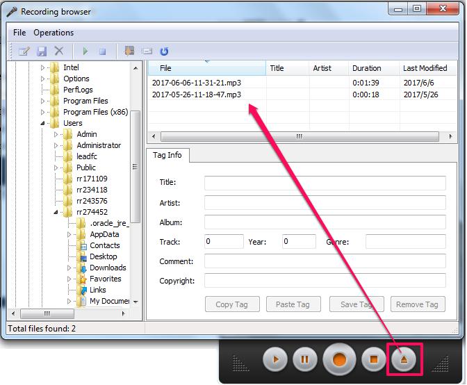 Cliquez sur le bouton Recording browser (« Navigateur d'enregistrement »), puis ouvrez la liste des fichiers d'enregistrement. Vous pouvez y voir toute la musique en streaming téléchargée. Vous pouvez cliquer avec le bouton droit pour renommer le fichier et modifier les informations de balise de la chanson, telles que le titre, l'artiste, l'album et le genre.