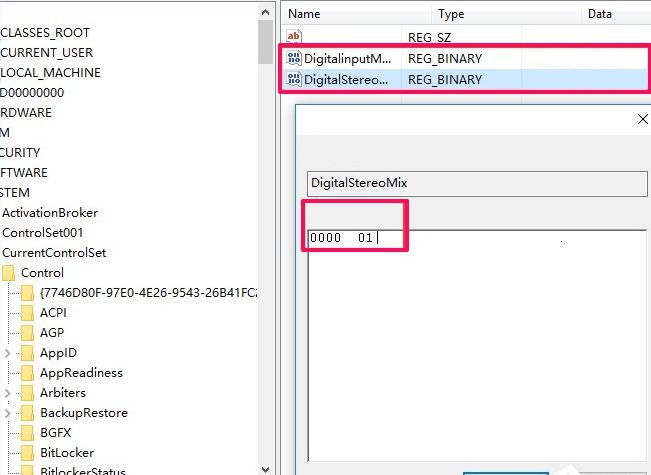 Trouvez le « DigitalinputMonitor », « DigitalStereoMix », changez la valeur en 0000 01, puis le mixage stéréo sera activé.