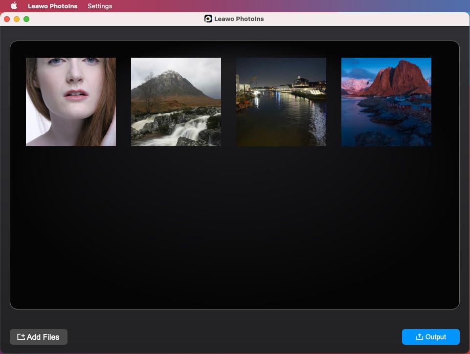Pour retoucher vos photos avec cet outil, vous devez d’abord y ajouter les photos sources. Lancez PhotoIns de Leawo pour Mac sur votre iMac ou Macbook. Ensuite, suivez l’une des deux méthodes présentées ci-dessous pour ajouter les photos :