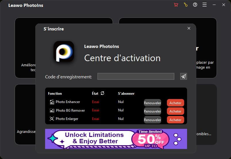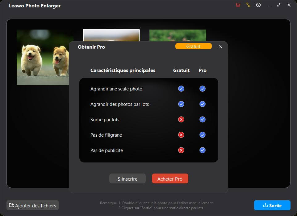 Photo Enlarger de Leawo est disponible à la fois en version d'essai gratuite et en version d'enregistrement, toutes deux gratuites à télécharger, à installer et à utiliser, sans logiciels malveillants ni logiciels espions. Cependant, il existe quelques différences entre la version d'essai gratuite, la version enregistrée et la version expirée.