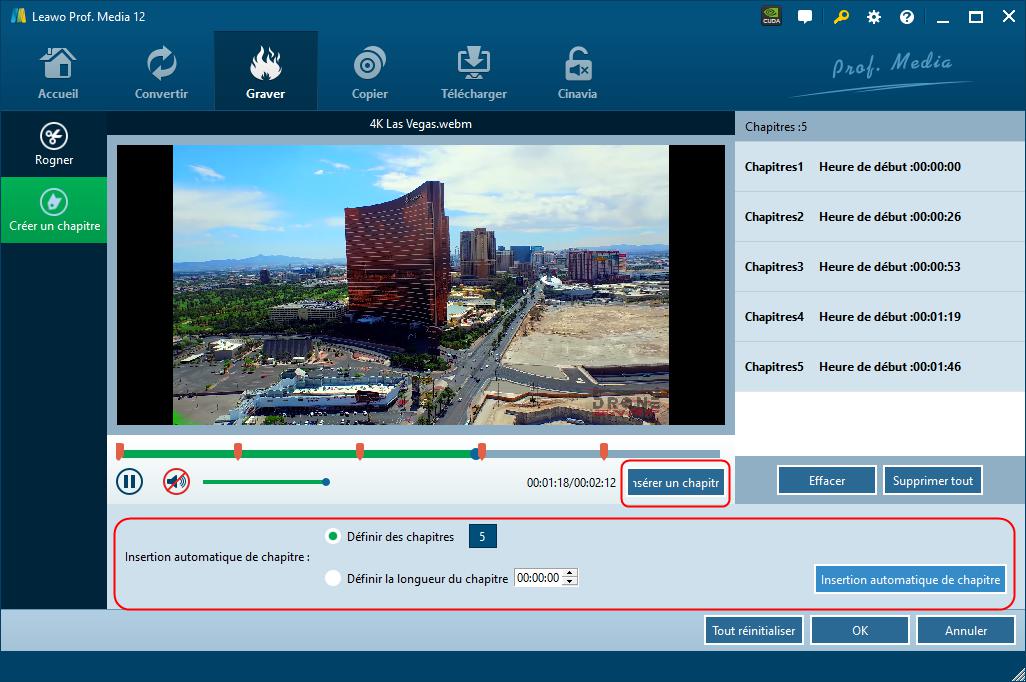 Après avoir coupé la longueur de la vidéo et créé des chapitres, cliquez sur le bouton « OK » pour enregistrer toutes les modifications et revenir à l'interface principale de l'onglet « Graver ».