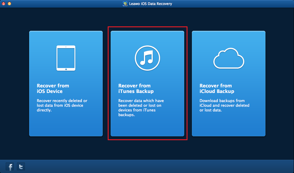 Run Leawo iOS Data Recovery for Mac after installing it on your MacBook and then click "Recover from iTunes Backup" entry.
