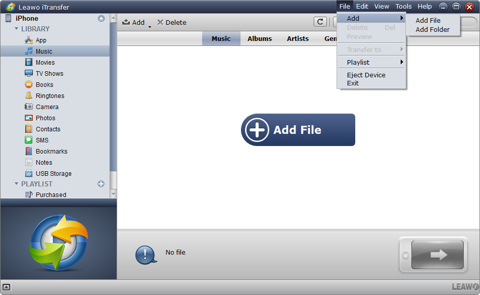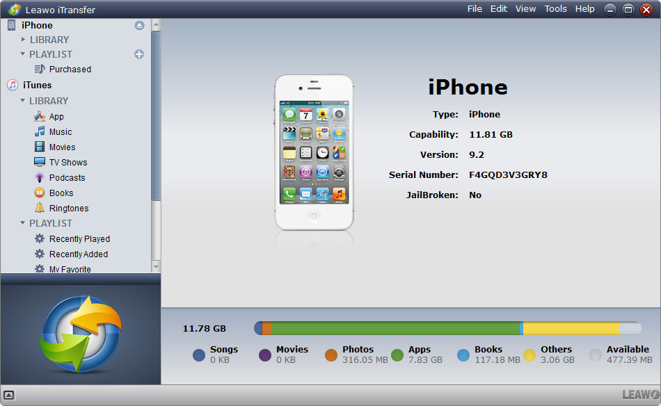 Come potente programma di trasferimento per iPod, iPad e iPhone, Leawo iTransfer fornisce soluzioni perfette per problemi di trasferimento iPhone, iPad e iPod. È molto utile per trasferire 12 tipi di file, come foto, musica, video, SMS, contatti e così via tra dispositivi iOS, iTunes e PC. Può anche eseguire il backup di file iPhone, iPad e iPod (touch) sul computer. Inoltre, Leawo iTransfer è un gestore musicale eccezionale, che consente agli utenti di gestire le playlist dei dispositivi iOS e iTunes senza limiti. Inoltre, Leawo iTransfer supporta i dispositivi iOS più recenti (iPhone, iPad e iPod), iOS e iTunes.