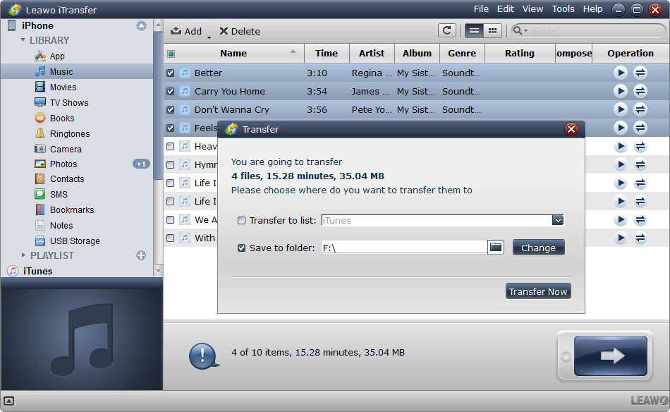 Leawo iTransfer aiuta gli utenti a liberarsi della sincronizzazione di iTunes. Non cancellerà nulla durante il processo di trasferimento dati, quindi gli utenti non devono più preoccuparsi di perdere dati durante la sincronizzazione.