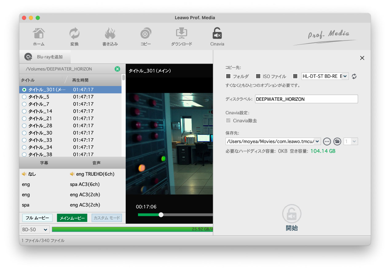 それだけでなく、Blu-rayフォルダ/ISOファイルをLeawo Prof.Media for Macの主画面にドラッグ&ドロップで読み込むこともできます。